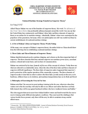 • CMSI Translations #6: Building a World-Class Navy in a Comprehensive Way: It's Logic in Theory, History, and Practice by Liu Lijiao and Jia Benjia